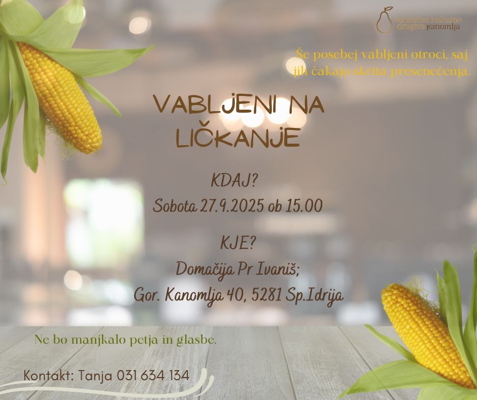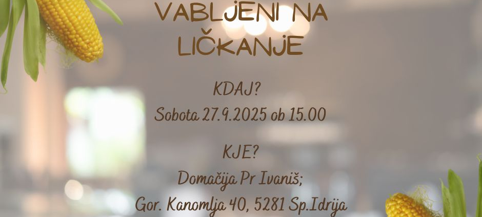 V soboto 27.9.2025 ob 15.00 pripravljamo star običaj ličkanja koruze.